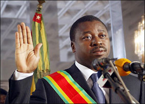 Le jeune voleur de légitimité, prince héritier du trône de la soi-disant République, mais en réalité Monarchie Françafricaine du Togo, Faure Eyadema, fils de son père, a prêté serment, encadré par un quarteron de pairs et pères en usurpation électorale et comédiens du théâtre démocratique tropicalisé. Il y avait d’abord le triplet des pays limitrophes, plus le grand Cousin françafricain à la dérive, autocratie autochtone, la Côte d’Ivoire. La question qui se pose au sujet de cette tourbe infecte de farceurs de haut vol, acolytes d’une diplomatie de pacotille qui honnissent l’Afrique, se moquent de son peuple et de son avenir placé bien plus bas que leur bon plaisir rance, c’est celle-ci : « À partir de quel degré de trucage des élections ces masturbateurs diplomatiques venus légitimer la mascarade de leur pair en brigandage électoral se seraient-ils contentés d’une représentation par leur sous-secrétaire au Ministère des Affaires Etrangères »?