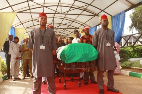 Le corps de l’icône de la littérature, feu Professeur Chinua Achebe, est arrivé à l’aéroport international Nnamdi Azikiwe d’Abuja, tôt ce matin, 21 mai où il a été accueilli par des responsables gouvernementaux. Le corps a ensuite été transporté à bord d’un avion de ligne privé à Enugu d’où il a rejoint sa ville natale, Ogidi, dans l’état d’Anambra. A Ogidi, la dépouille de l’illustre écrivain a été |