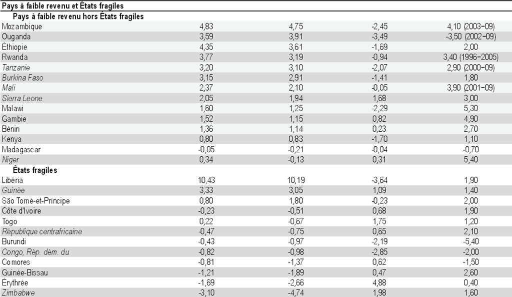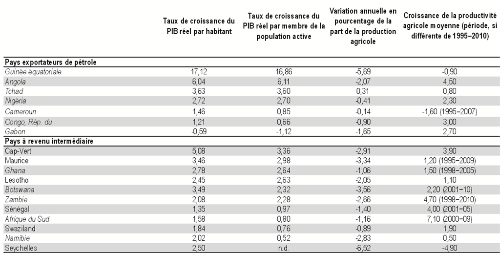 Tableau 3.1. Transformation structurelle des pays d’Afrique subsaharienne :