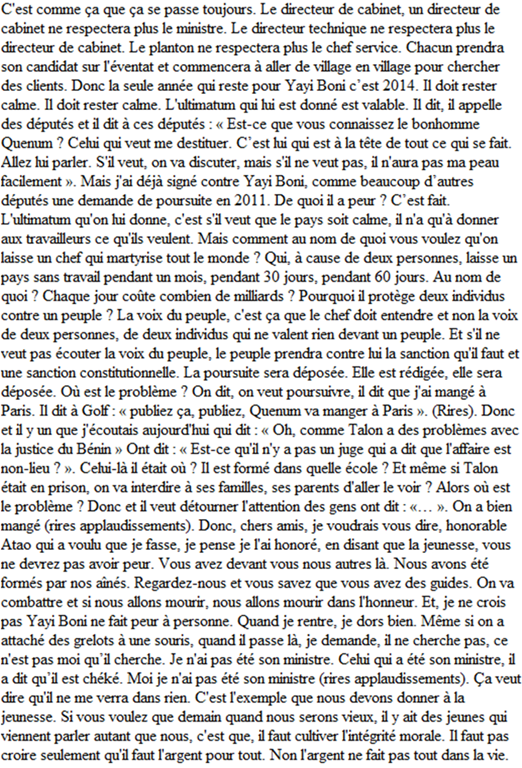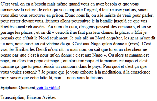 | Fracassantes Révélations de l’Honorable Epiphane Quenum sur l’Origine Politique, les Méfaits et Machinations de Messire Yayi