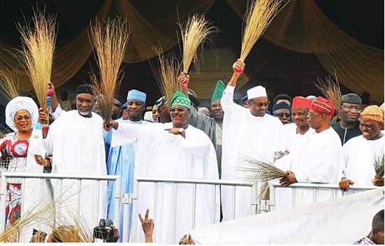 Depuis sa création, ses membres influents ne ratent jamais une occasion de brandir leur balai symbolique, comme on peut le voir ici sur cette image. En Afrique, la métaphore du ballet a souvent été utilisée par les hommes politiques. On se souvient que, au début de la tourmente politique qui allait conduire à la guerre en Côte d’Ivoire, le général Guéï, qui accéda au pouvoir par un coup d’état, prétendait au tout venant qu’il était seulement venu pour « balayer la maison ». La suite, on la connaît : il a fallu le déloger à coups d’élections calamiteuses, de ruse et de stratégie politiques de la part de Laurent Gbagbo. Dans le cas de ce grand parti d’opposition nigérian, l’APC, qui entend accéder au pouvoir dans la légalité démocratique, la question qu’on est en droit de se poser lorsqu’on voit ses éminents représentants brandir le balai est de savoir ce qu’ils veulent balayer au juste : — Est-ce pour balayer Jonathan et son parti en sérieuses difficultés politiques ? — Ou bien, est-ce pour balayer le Nigéria de la corruption, de la violence endémique quotidienne, du terrorisme de Boko Haram, des vols à main armée, bref de tout ce désordre qui « ojojumo », donne des maux de tête aux Nigérians?