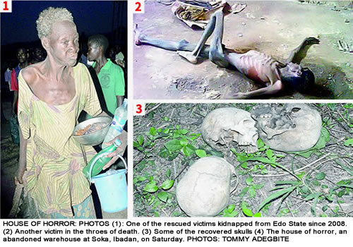 •Human skulls, rotten corpses litter scene •Guns recovered; ATM, ID cards of victims found Soka community in Ibadan, Oyo State turned to a Mecca of a sort on Saturday, when an abandoned property at Idi Mangoro area was discovered with about 15 chained people suspected to have been kidnapped.