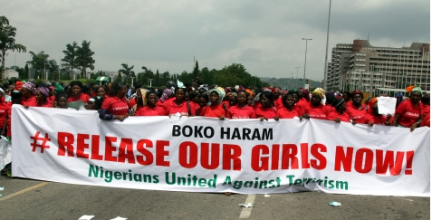Une foule gigantesque de manifestantes stipendiées sous l’égide de soi-disant « Nigérians unis contre le terrorisme » a fait son apparition aujourd’hui à Abuja dans une mise en scène de rassemblement de protestation au cours duquel, le groupe a demandé à la secte Boko Haram de libérer les lycéennes de Chibok qu’elle a enlevées il y a quelques 40 jours. La foule était composée de différentes catégories de personnes, y compris des femmes, des jeunes, des motocyclistes, des pousseurs de camions et toutes sortes de gens. Les manifestants ont été convoyés au Secrétariat fédéral en grand nombre par des bus appartenant au gouvernement populairement dénommés « El – Rufai » ; ils portaient diverses pancartes avec l’inscription « # Boko Haram, libère nos filles maintenant. » Pour se donner une apparence crédible, ils étaient vêtus de T-shirts rouges avec le même message écrit au dos. Le rassemblement, dirigé par un membre du Parti démocratique du peuple (PDP ) de la Chambre des représentants, Beni Lar et une responsable de l’Association des Femmes de marché, Felicia Sani, a été accueilli à l’Arcade militaire, en face d’Eagle Square par le chef d’état-major de l’Armée, Alex Badeh et d’autres hauts responsables militaires. Le Chef d’Etat Major a saisi l’occasion pour informer les manifestants que l’Armée nigériane a maintenant cerné la localisation des Lycéennes enlevées mais s’est gardé de révéler leur position exacte, et a exclu tout usage de la force pour libérer les filles. Le rassemblement était diffusé en direct sur la chaîne de télévision nationale, l’Agence Nationale de Télévision du Nigeria ( NTA ) . Selon des sources crédibles, le rassemblement aurait été organisé et financé par le gouvernement sous le couvert de « l’Association des femmes de marché » et les «Nigérians Unis contre le terrorisme.» Les coordonnateurs et manifestants des différents groupes ont ensuite été invités à l’Ancien terrain de parade où ils ont été payés. Pas moins de cinquante autobus de grande capacité ont été aperçus sur place. La manifestation était organisée pour contrer et discréditer la campagne # BringBackOurGirls mondialement célèbre dirigée par l’ancienne ministre de l’Éducation, Oby Ezekwezili et d’autres militants des droits humains à travers le Nigeria. Il convient de rappeler qu’une délégation présidentielle a reçu les manifestants de # BringBackOurGirls au même Eagle Square jeudi dernier où les organisateurs ont eu à poser dix questions au Président auxquelles ils ont exigé des réponses. Mais dans l’ensemble, le Président est resté évasif et faute de répondre, il a demandé aux manifestants d’adresser leurs protestations aux ravisseurs des lycéennes de Chibok ( c’est-à-dire Boko Haram ), plutôt qu’à lui. La manifestation d’aujourd’hui a visiblement exaucé les vœux de Monsieur Jonathan. La lettre du président Goodluck Jonathan de la semaine dernière avait été lue par la ministre d’État au Territoire de la capitale fédérale ( FCT ) , Mme Olajumoke Akinjide. Son contenu avait alors mis en rogne les manifestants qui ont quitté la salle déçus.