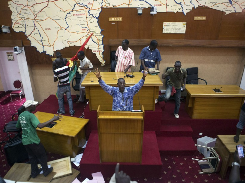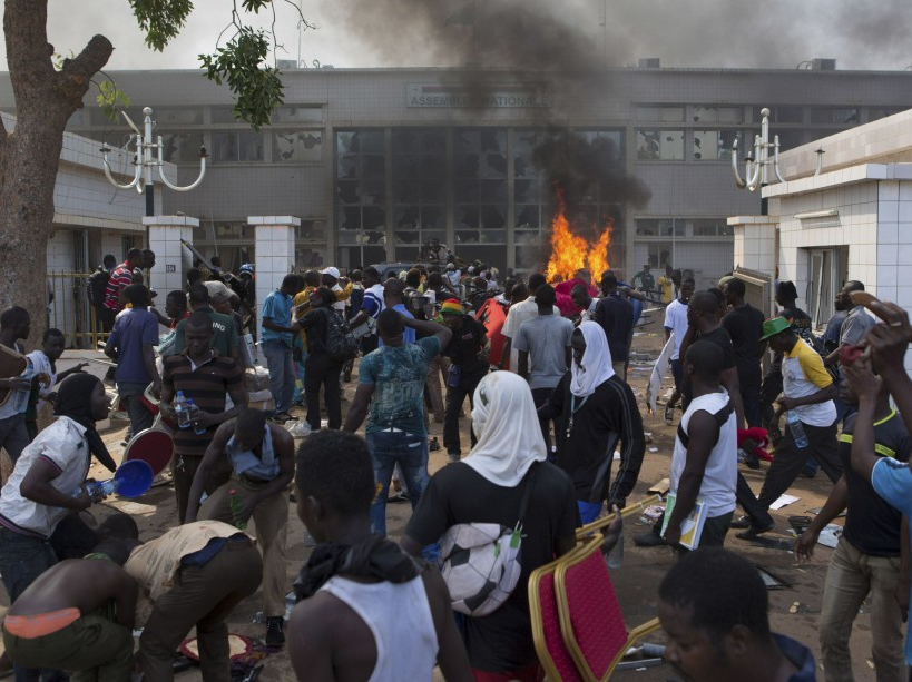 Des manifestants pénètrent dans l’Assemblée nationale. Le vote de la révision constitutionnelle contestée devait se tenir ce 30 octobre.