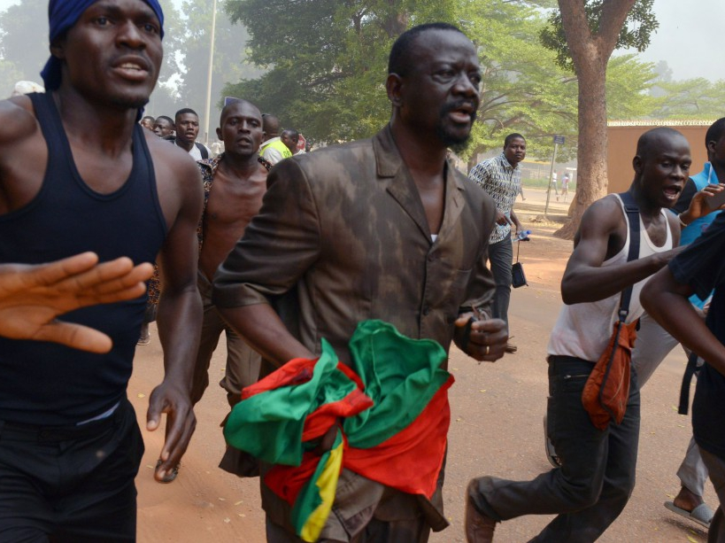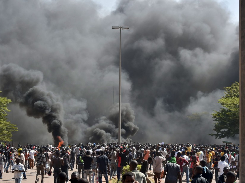 Des manifestants prenant d’assaut le parlement, à Ouagadougou, le 30 octobre.