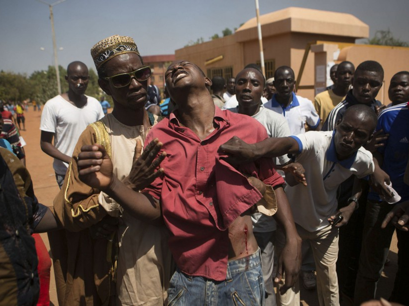 Un manifestant atteint par une balle, à Ouagadougou, le 30 octobre.