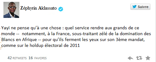Yayi ne pense qu’à une chose : quel service rendre aux grands de ce monde — notamment, à la France, sous-traitant zélé de la domination des Blancs en Afrique — pour qu’ils ferment les yeux sur son 3ème mandat, comme sur le holdup électoral de 2011.