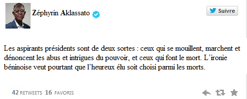 Les aspirants présidents sont de deux sortes : ceux qui se mouillent, marchent et dénoncent les abus et intrigues du pouvoir, et ceux qui font le mort. L’ironie béninoise veut pourtant que l’heureux élu soit choisi parmi les morts.