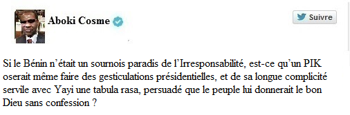 Si le Bénin n’était un sournois paradis de l’Irresponsabilité, est-ce qu’un PIK oserait même faire des gesticulations présidentielles, et de sa longue complicité servile avec Yayi une tabula rasa, persuadé que le peuple lui donnerait le bon Dieu sans confession ?
