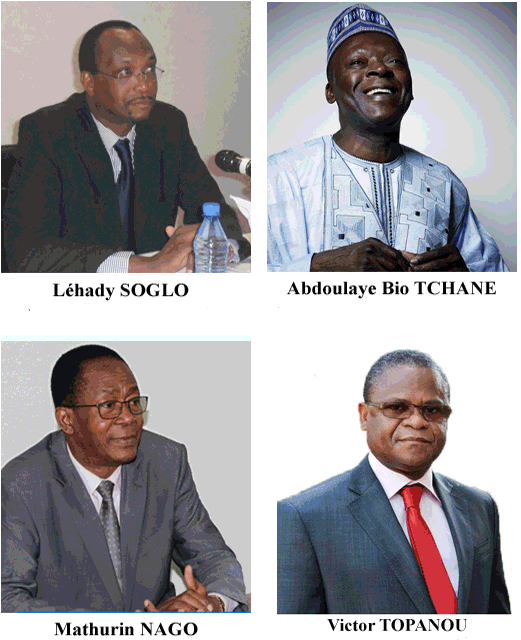 Voici une petite liste de probables candidats à l’élection présidentielle de 2016 au Bénin. Cette liste a été recueillie dans une publicité sur un siteˡ béninois qui présente ce qu’elle appelle les « probables candidats » à l’élection présidentielle. La publicité est visible depuis plusieurs semaines sur le site et ses supputations ainsi que leurs contenus ne sont pas démentis par les intéressés.