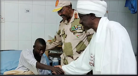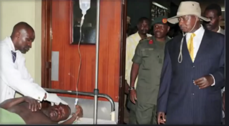 M Museveni le Président de l’Ouganda visite un blessé de guerre dans son pays
