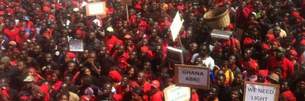 Des milliers de participants se sont réunis au Cercle Kwame Nkrumah à Accra portant des pancartes exprimant leurs frustrations, ou exigeant le départ du président John Mahama pour raison d’incompétence.