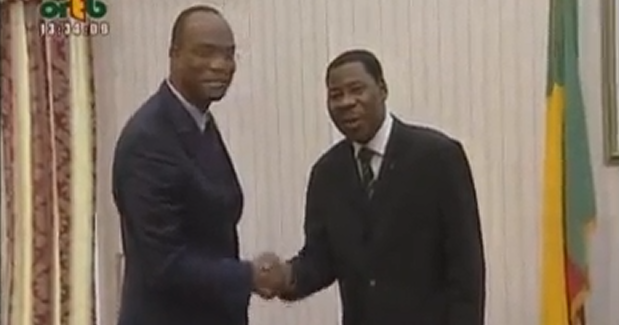 La mode actuelle est d’être contre Yayi Boni, qui joue bien le rôle du Diable de la République, mais il fut un temps pas si lointain que ça, où Yayi était plutôt l’ange, et où ses contempteurs d’aujourd’hui n’étaient pas seulement ses thuriféraires mais se jetaient à corps perdu dans ses bras, y filaient le parfait amour… La RB a démontré en la matière une prestation ambigüe, hypocrite voire, basée sur le double jeu cynique et l’égoïsme le plus bestial, souvent servie par une rhétorique pompeuse de circonstance. Écoutez plutôt, Léhady Soglo ici dans l’ivresse de l’effusion avec l’Ange Yayi… |