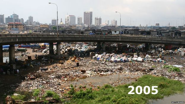 | Une partie du lifting Lagos a mis l’accent sur l’élimination des déchets eu-dessous des ponts aériens et les gangs, connus comme des «Area Boys”z qui sévissent là.