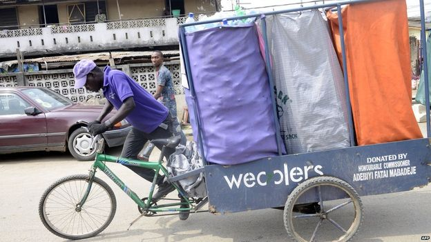 | Lagos produit 12 000 tonnes de déchets par jour. Les ménages paient pour le ramassage des ordures. Un e initiative tente d’encourager le recyclage par l’attribution de points qui peuvent être échangés contre des prix.