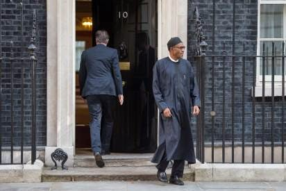 Buhari montre qu’il n’est pas venu en taxi et fait une dernière pose devant le 10 Downing Street |