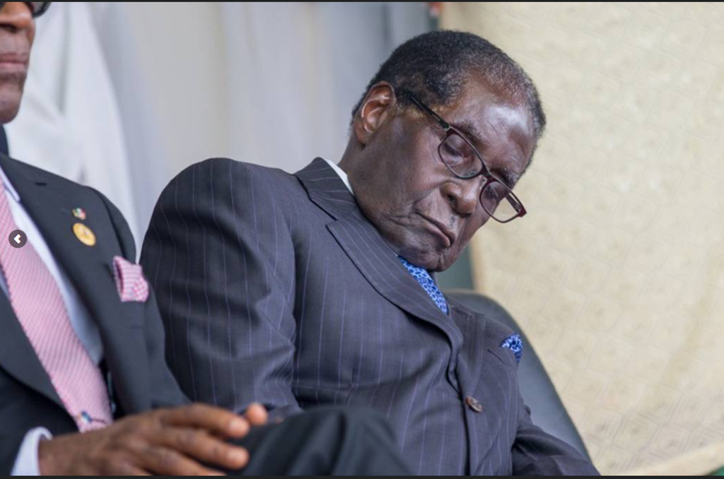 | Le président Robert Mugabe du Zimbabwe est arrivé vendredi au Nigeria pour assister à la cérémonie d’investiture du président Muhammadu Buhari à Abuja. Peu après son entrée dans la tribune des dignitaires, le nonagénaire homme fort du Zimbabwe a commencé à roupiller dans le cadre de sa sieste quotidienne, qu’il ne rate sous aucun prétexte.