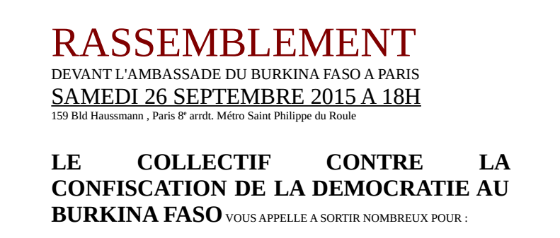 APPEL AU RASSEMBLEMENT DE SAMEDI 26 SEPTEMBRE 2015