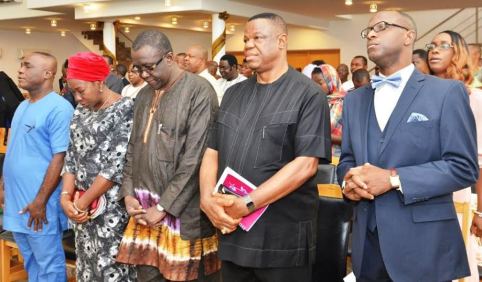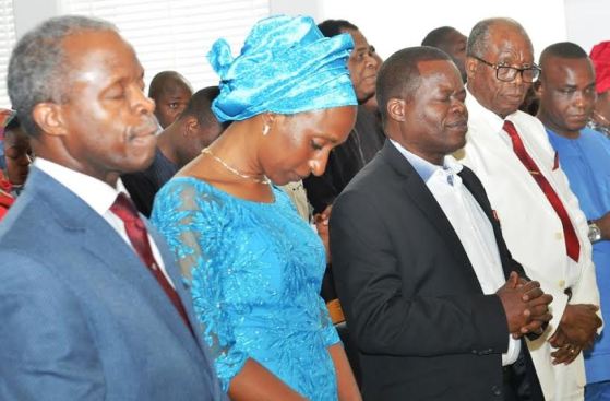 Le Vice Président Yemi Osinbajo et son épouse, Dolapo, s’unissent à d’autres chrétiens pour célébrer la Journée des Mères à la Chapelle d’Aso Rock — la présidence du Nigéria — Abuja ce 6 mars 2016 ..