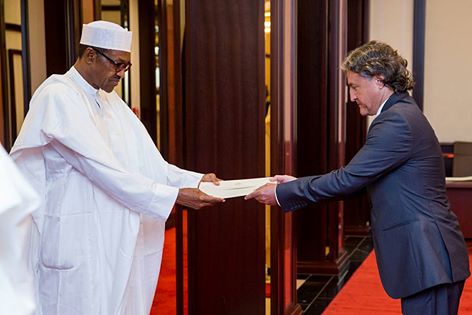 Le Président Buhari a reçu les lettres de créance du nouvel l’Ambassadeur de Bulgarie S.E M. Veselin Blagoer Delcher, d’Australie, S.E.M. Paul Lehmann, de la Sierra Leone, S.E Hajia Afsatu Olayinka Ebiso-Kabba et d’Islande, S.E. M. Thordur Aegir Oskarsson. La c érémonie se déroulait à la Présidence à Abuja.ibinimori