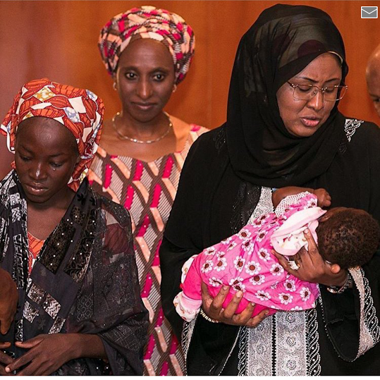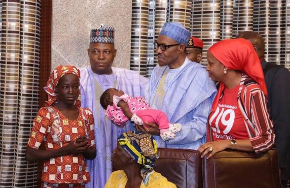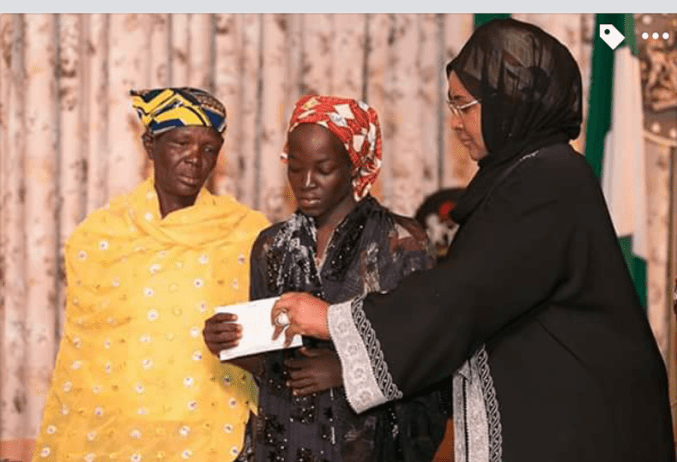 La première des 219 lycéennes de Chibok enlevées par le groupe terroriste Boko Haram, et libérées après plus de deux ans de captivité, a rencontré le Président Muhammadu Buhari au palais Aso Roc à Abuja. Amina Ali, qui a été retrouvée par des milices civiles et des troupes nigérianes le mardi, a quitté par avion Maiduguri dans l’État de Borno, au nord du Nigeria, pour rejoindre Abuja, avec sa mère, Binta et son bébé.