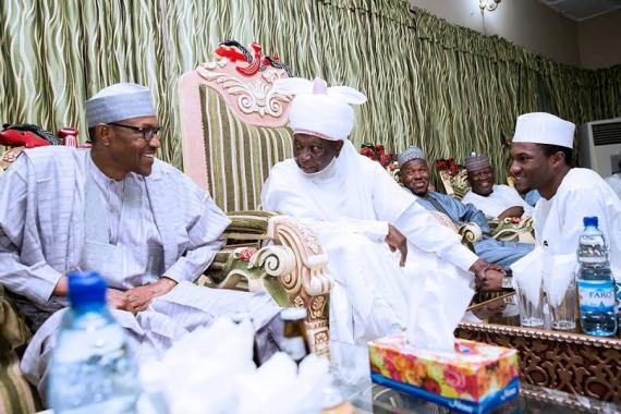 Le Président Buhari assiste à une cérémonie de rupture du jeûne initiée en son honneur par l’Émir de Daura Sa Majesté Royale Alhaji Dr Faruk Umar Faruk au palais de celui-ci à Daura, dans l’état de Katsina