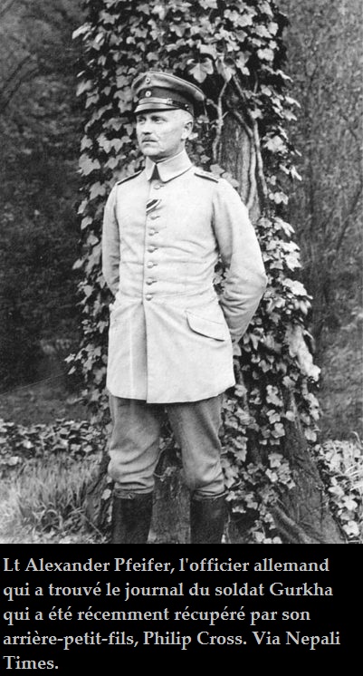 On ne sait pas si le Lt Pfeifer était en train de traduire le journal du soldat népalais ou si ce sont ses propres instructions. Le propre journal de l’officier allemand a finalement été retrouvé plus d’un siècle plus tard par son arrière-petit-fils. Nous ne savons pas quel était le nom du Gurkha, d’où il venait au Népal et ce qui lui est arrivé.