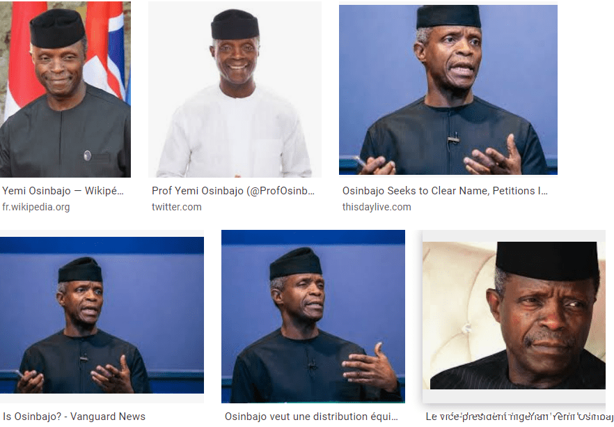 Ici, comme le montrent les photos immédiatement précédentes de Monsieur Osinbajo, on voit le Vice-Président dans une tenue sobre, sans signe d’identité particulière, à l’ouverture intelligemment conçue pour s’inscrire dans le schéma d’identification des trois grands ethnies du pays : cette tenue est comprise par les Yoruba, par les Ibo et ne choquerait pas non plus dans un milieu Hausa/Peul