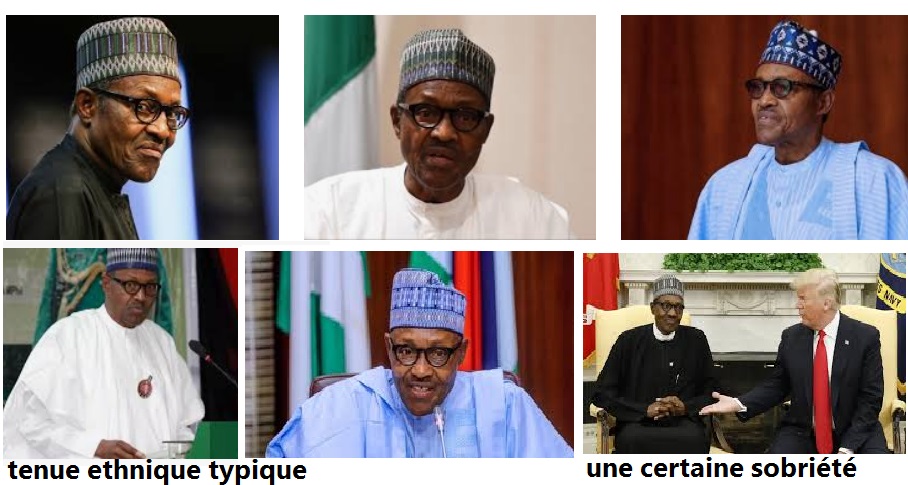 Comme on le voit dans l’image ci-dessus et celles immédiatement plus haut, la posture vestimentaire de Buhari se veut fermement ethnique. Le président nigérian s’affiche comme un Peul/Hausa et attend que les autres le voient comme tel. Dans son esprit, l’identité Peul/Hausa qu’il affiche et qui est aussi la préférence qu’il impose dans ses nominations où 98% des chefs des agences de sécurité sont choisis dans sa région et dans sa religion, cette identité pourtant partiale, est celle du Nigeria. Il ne pense pas que l’identité du Nigeria doive être plus ouverte, plus négociée et transcender les spécificités tribales. Et c’est ce qui motive sa vision politique qu’on peut taxer d’ethniquement hégémonique, comme l’a fait l’évêque de Sokoto, Mgr Matthew Kukah, sans commettre un péché d’exagération.