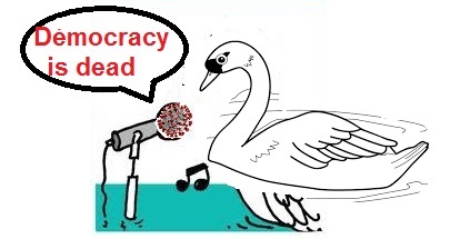 Covid-19 est le chant du cygne de la Démocratie. Non seulement à travers le prétexte que cela donne aux tenants du pouvoir d’instaurer un état d’urgence à durée indéterminée – qui durera certainement aussi longtemps que la téléologie vaccinale qui en est au principe n’aura pas atteint son but. Et quel que soit le qualificatif qu’on ajoute au mot état d’urgence, sanitaire ou pas, d’un point de vue démocratique, un état d’urgence – surtout lorsqu’il est de durée indéterminée – est un état d’urgence, c’est-à-dire une mise entre parenthèses de la Démocratie.