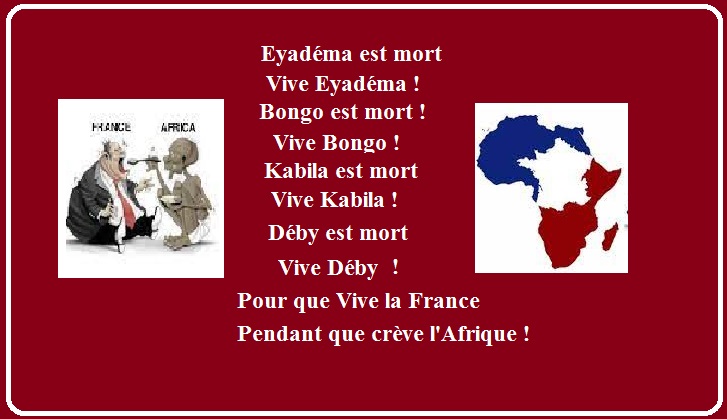 Comment expliquer le hasard qui veut que dans quatre pays africains francophones d’Afrique, des fils ont succédé à leurs pères comme présidents à la mort de ceux-ci, bien que ces pays passent pour être des républiques, alors que ce genre d’aberration politico-éthique est à peu près impensable dans les pays anglophones ? Comment expliquer cette différence scandaleuse qui saute aux yeux sinon par la nature de la colonisation française en Afrique, le refus français d’accepter l’indépendance des Noirs africains, — alors qu’elle accepte bien celle des Blancs africains dans le Nord du continent — et la perpétuation de la philosophie coloniale sous les dehors d’une sinistre supercherie, sur fond de chantage à la division, la guerre et la mort. Il s’agit du Togo, de la RDC, du Gabon, et maintenant du Tchad.