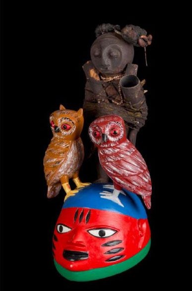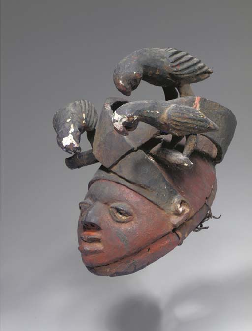 Yoruba gelede mask with 3 pigeons (mother and children)