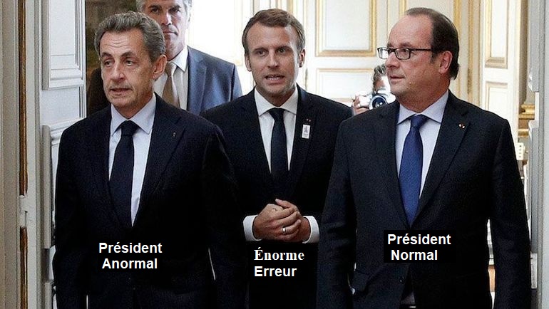 Il y avait le Président Anormal, puis le Président Normal putatif, et nous voici sous le règne de l’énorme erreur de casting présidentiel, un emmerdeur autoproclamé, qui achève la descente aux enfers de la fonction présidentielle en France…Et quand on pense que cette énorme erreur en complet veston ose se réclamer de Napoléon ou de de Gaulle …! De quoi faire retourner ses illustres prédécesseurs dans leur tombe