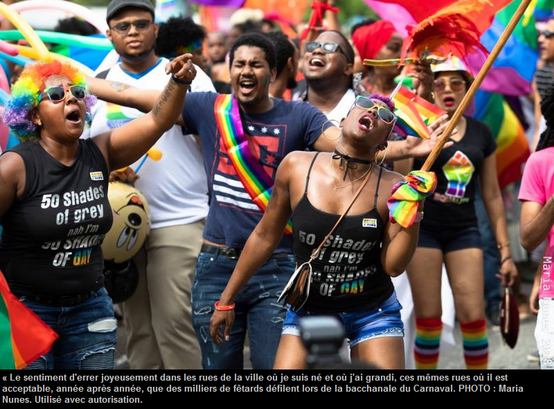 Je souris toujours à cause du samedi 28 juillet. L’histoire a été écrite à Trinité-et-Tobago avec notre premier défilé de la fierté. Depuis ce jour, je traite l’expérience. L’impression d’errer joyeusement dans les rues de la ville où je suis né et où j’ai grandi, ces mêmes rues où il est acceptable, année après année, que des milliers de fêtards défilent lors de la bacchanale du Carnaval. Qu’est-ce qui était différent samedi dernier ? La différence était que nous avions tous une raison de parader : nous avions tous une déclaration importante à faire. Tant de mes amis LGBTQ, dont certains sont retournés à Trinidad après avoir émigré pour chercher une meilleure qualité de vie à l’étranger, une vie où ils sont couverts par des dispositions de base qui les protègent de la discrimination sur le lieu de travail, dans l’accès aux services gouvernementaux, et où ils sont pleinement reconnus comme des êtres humains sur un pied d’égalité avec n’importe qui d’autre.