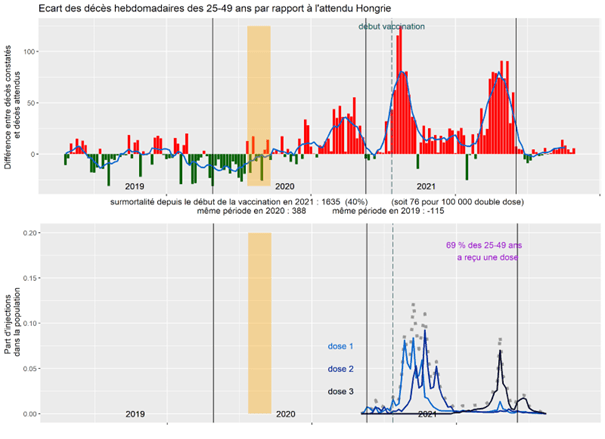 En Hongrie, chez les 25-49 ans, chaque campagne vaccinale est parfaitement marquée par une hausse de mortalité.