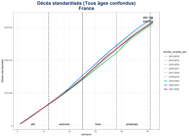 Par exemple, en France, une sous-mortalité a été observée pendant la période de juillet 2019 à juin 2020.