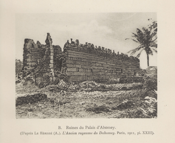 Ruines du palais d’Abomey. Dans LE HÉRISSÉ, Auguste. L’ancien royaume du Dahomey. Mœurs, religion, histoire. Paris : E. Larose, 1911.