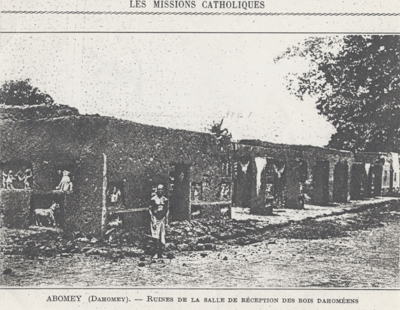 Bâtiment de réception du roi Gèzo (1818-58) après l’incendie de novembre 1892. (Les Missions catholiques, 1892).