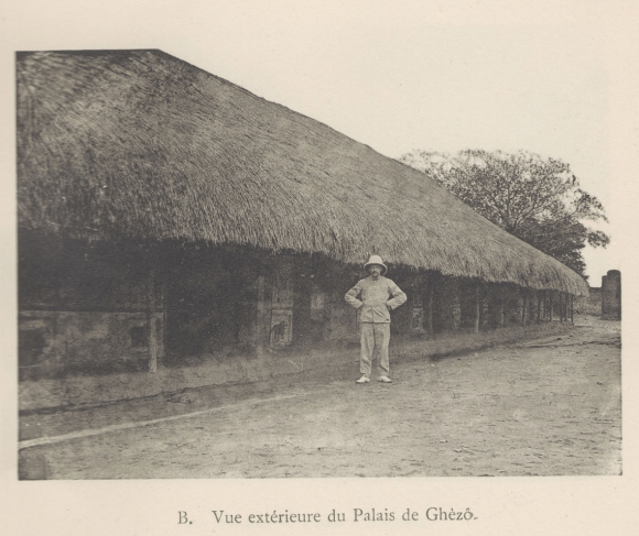 Bâtiment de réception du roi Gèzo, Abomey, où se tint l’exposition du laboratoire d’Ethnologie du musée de l’Homme, dans le cadre du « Centenaire de la mort du roi Glélé ».