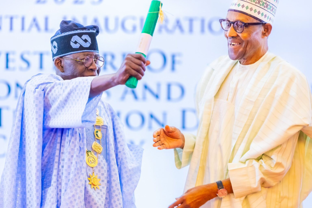 S’exprimant peu après avoir reçu les documents de transition, M. Tinubu a rendu hommage au président sortant, qu’il appelle « Monsieur démocrate ».