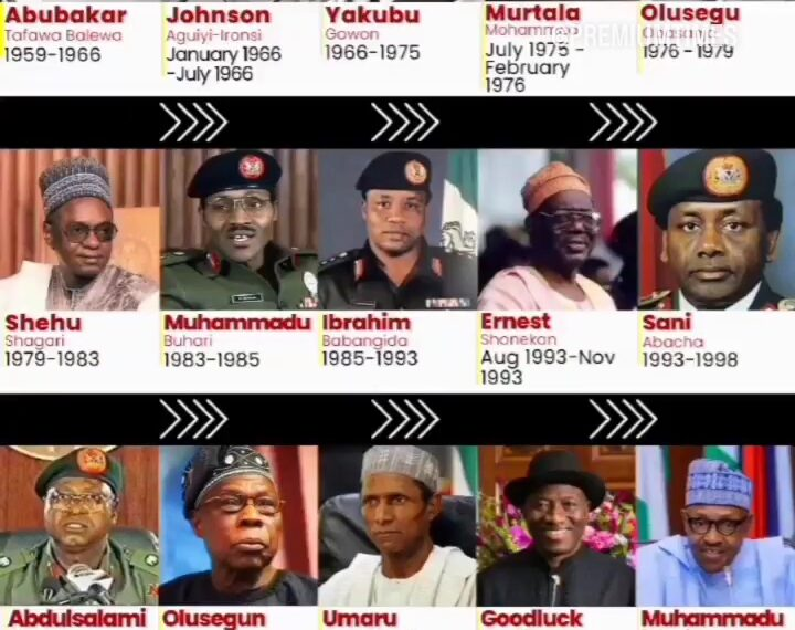 - Johnson Aguiyi-Ironsi janvier 1966 – juillet 1966