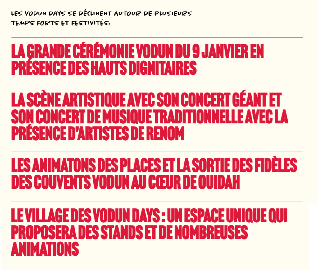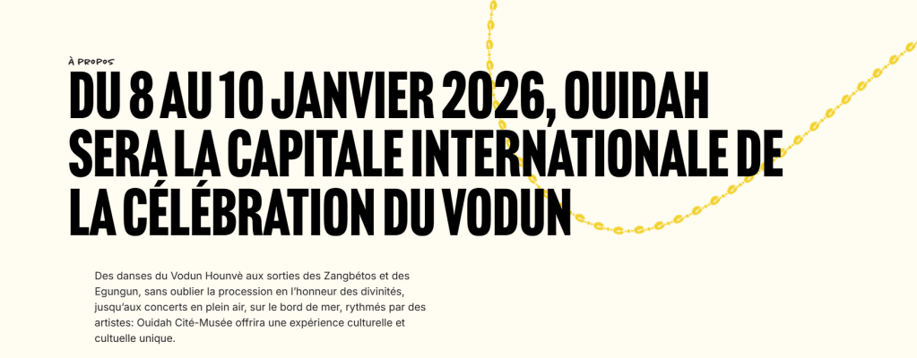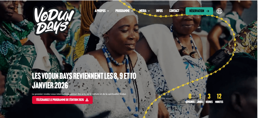 07/01/202607/01/2026 Binason Avèkes Vodun zan : Moments Magnifiques ! Dossier de Presse des Vodun Days 2026Télécharger Demander le programme Rétrospectif 2025 ibinimori Partager : Cliquer pour envoyer un lien par e-mail à un ami(ouvre dans une nouvelle fenêtre) E-mail Cliquez pour partager sur WhatsApp(ouvre dans une nouvelle fenêtre) WhatsApp Cliquez pour partager sur Telegram(ouvre dans une nouvelle fenêtre) Telegram Partager sur Tumblr Cliquer pour imprimer(ouvre dans une nouvelle fenêtre) Imprimer TweetPlus Cliquez pour partager sur Reddit(ouvre dans une nouvelle fenêtre) Reddit J’aime chargement… Similaire