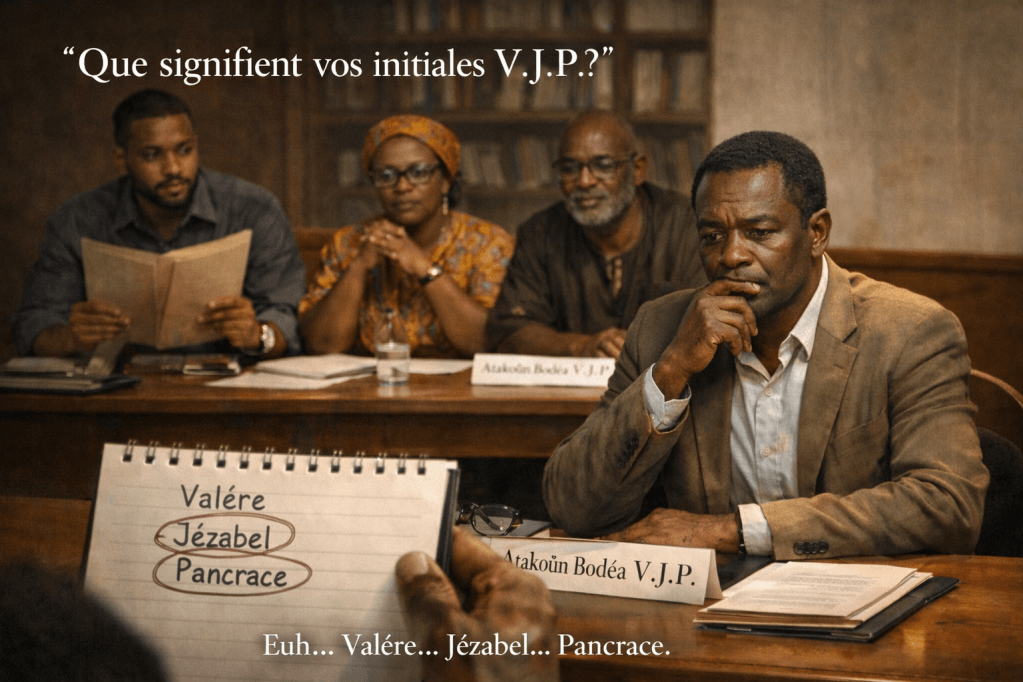 — Monsieur… Atakoùn Boɖéa V.J.P., merci d’être venu. Nous ne vous demanderons pas de défendre une thèse. Nous aimerions simplement comprendre comment vous pensez.